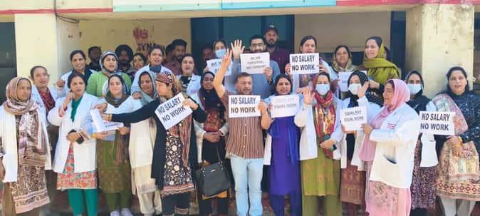 Poonch News: एनआरएचएम कर्मचारियों ने मांगों को लेकर काम छोड़ हड़ताल की