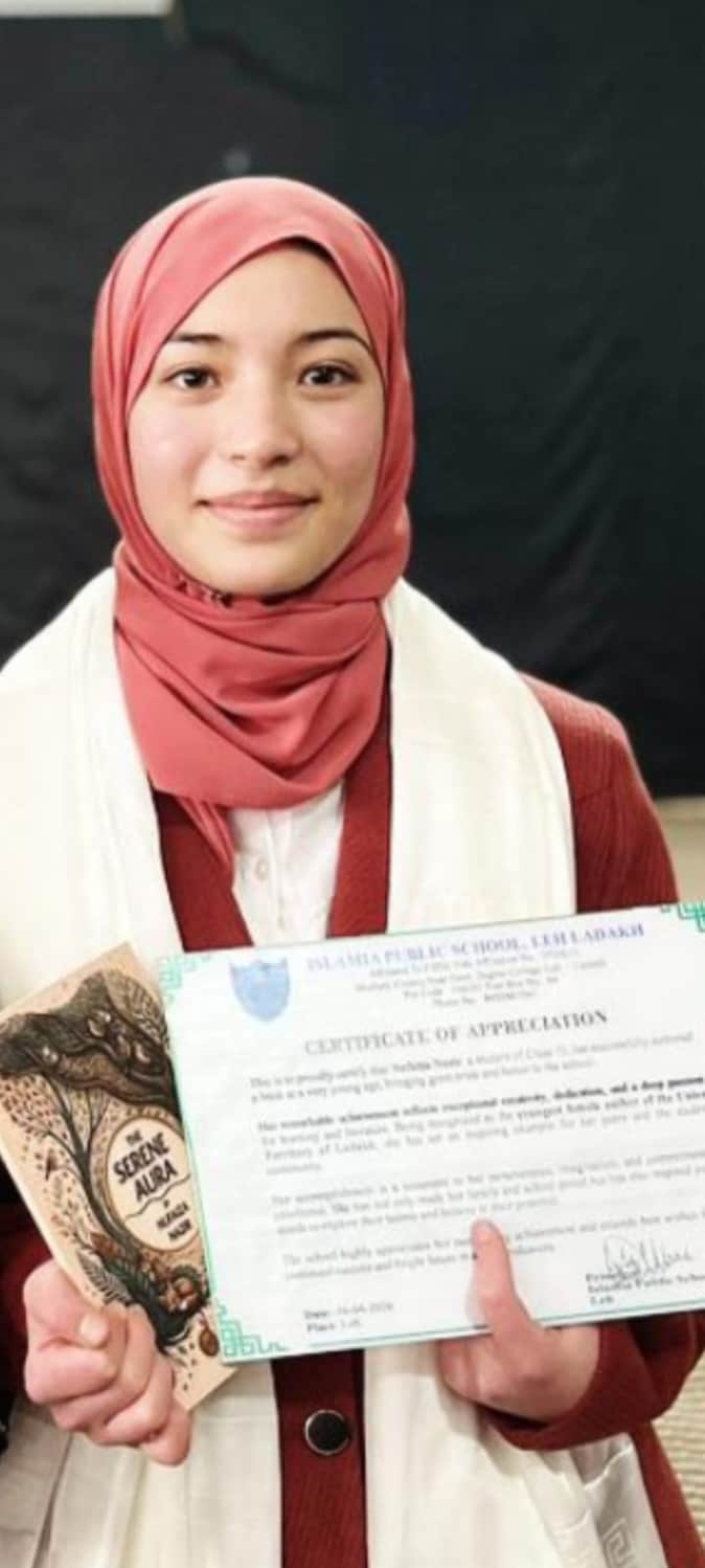 लेह। युवा लेखकों के लिए प्रेरणादायक उपलब्धि के रूप में इस्लामिया पब्लिक स्कूल की छात्रा नुफाइजा नजीर ने हाल ही में अपनी पहली पुस्तक द सीरीन ऑरा का लोकार्पण किया। उन्होंने यह पुस्तक कक्षा 9वीं में अध्ययन के दौरान लिखनी शुरू की और इसे लगभग नौ महीने में पूरा किया। इस पुस्तक में लद्दाख की प्राकृतिक सुंदरता का जिमक