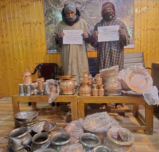 पुलवामा के अवंतिपोरा में पकड़े गए चोरी के आरोपी और बरामद सामान। स्रोत पुलिस