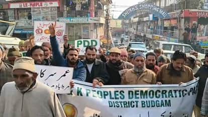 बडगाम में प्रदर्शन करते पीडीपी कार्यकर्ता। संवाद