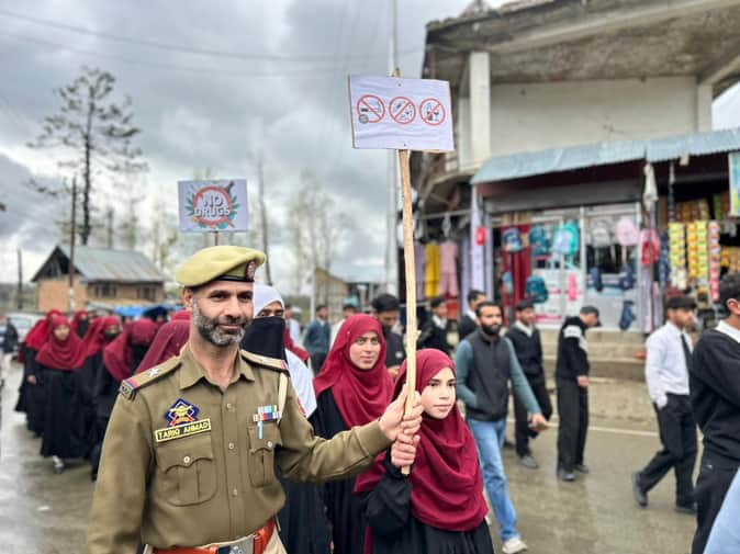 शोपियां के केलर में नशा विरोधी जागरुकता रैली। संवाद