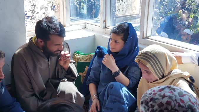 गांदरबल में राशिद अहमद मुगल के परिवार के साथ इल्तिजा मुफ्ती। संवाद