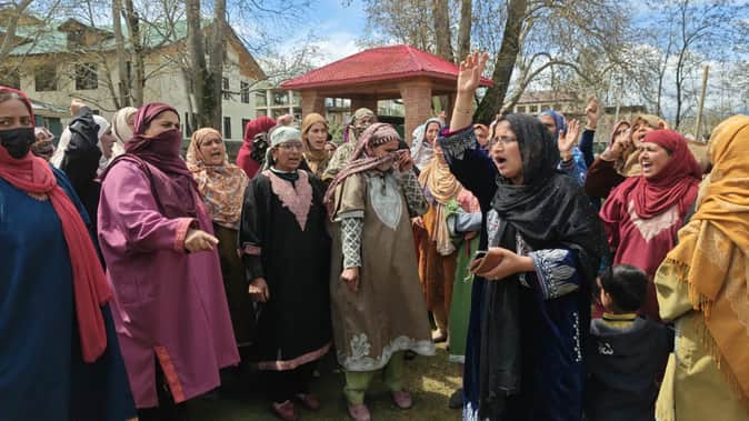 कुपवाड़ा के हंदवाड़ा में रसोइयों का प्रदर्शन। संवाद