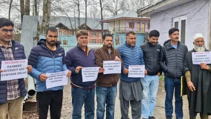 कुपवाड़ा के हंदवाड़ा में लंबित भुगतान की मांग करते ठेकेदार। संवाद