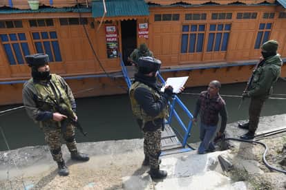 गृहमंत्री के कश्मीर दौरे से पहले श्रीनगर में एक हाउसबोट की जांच करती पुलिस। संवाद