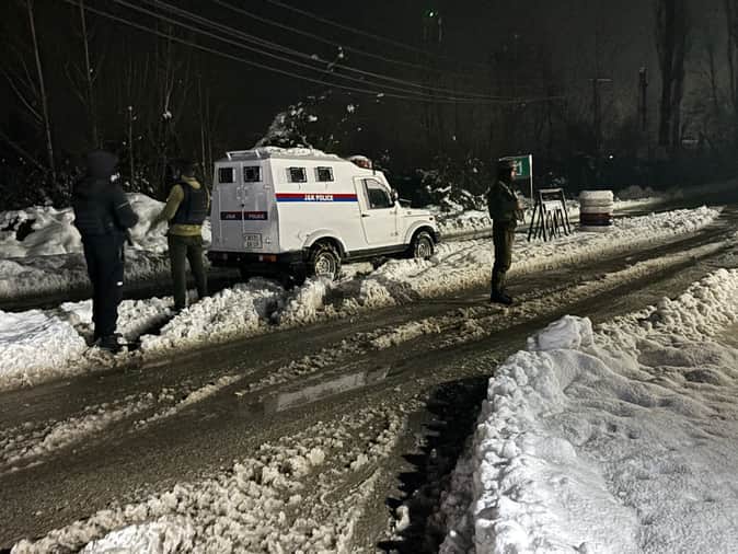 बारामुला में बर्फ में फंसे वाहन निकलवाती पुलिस। संवाद