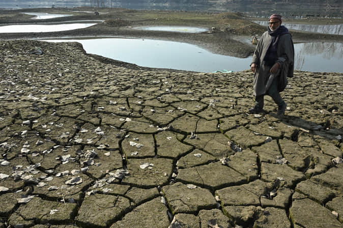 श्रीनगर में सर्दी में भी सूखी झेलम नदी। बासित जरगर