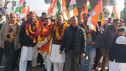 रियासी में रैली निकालते कांग्रेस कार्यकर्ता।