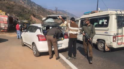 वाहनों की जांच करती पुलिस।