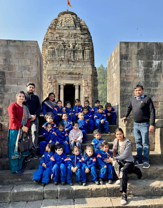 पांडव मंदिर का दौरे पर पहुंचे छात्र। बच्चे।