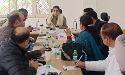 अधिकारियों के साथ बैठक करती परिवहन सचिव अवनी लवासा स्रोत सूचना विभाग