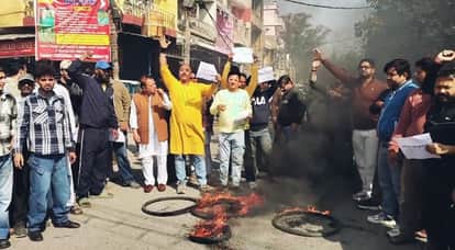 1.बिशनाह में दुष्कर्म के आरोपी को फांसी की सजा देने की मांग को लेकर प्रदर्शन करते युवा 2. बिशन