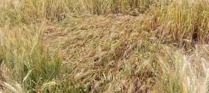 बिश्नाह में बारिश से बिछी गेहूं की फसल।
