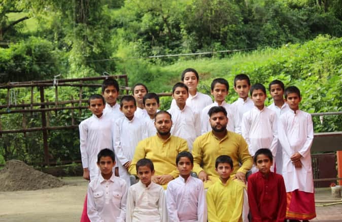पुरमंडल में वेद विद्यालय के छात्र और आचार्य।