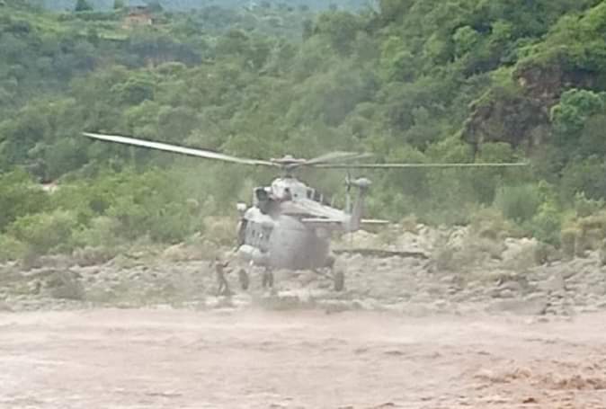 बचाव कार्य में जुटा वायु सेना का हेलिकॉप्टर