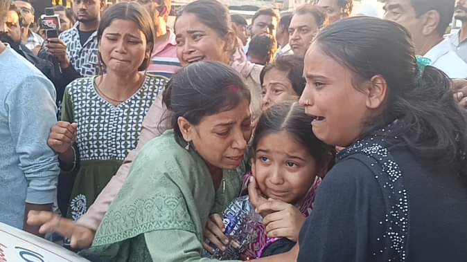 आरएस पुरा कस्बे में पूर्ण चंद का शव पहुचने पर विलाप करते बेटी अन्यस्रोत संवाद