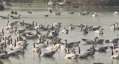 आरएस पुरा। कई देशों की सरहदें और गगन चुंबी हिमालय को पार कर विदेशी मेहमान जम्मू की आबोहवा में कुछ समय के लिए पहुंच चुके हैं। भारत-पाकिस्तान अंतरराष्ट्रीय सीमा से सटे घराना वेटलैंड की जलवायु साइबेरियन हंसों, कामनकूट, पर्पल हैरॉन्स, तिदारी, मुर्गाबी, बेखुर बतख व राजहंस सरपट्टी सवन को खूब भा रही है। इनके कलरव से घराना गुलजार हो उठा है।