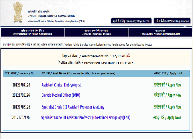 केंद्रीय स्वास्थ्य मंत्रालय के अधीन आने वाले देश भर के विभिन्न अस्पतालों में खाली पड़े कई शैक्षणिक और गैर शैक्षणिक पदों पर भर्ती शुरू कर दी गई है। केंद्रीय स्वास्थ्य मंत्रालय की ओर से यह भर्ती प्रक्रिया संघ लोक सेवा आयोग (UPSC) की ओर से आयोजित की जा रही है। संघ लोक सेवा आयोग की ओर से चिकित्सकों, डायलिसिस अधिकारियों समेत कई रिक्त पदों पर सीधी भर्ती के लिए आवेदन आमंत्रित किए गए हैं। आगे की स्लाइड्स में दिए गए सभी पदों के लिए भर्ती आवेदन की अंतिम तिथि मकर संक्रांति यानी 14 जनवरी, 2021 तक ही है। आगे देखिए किस पद के लिए क्या हैं योग्यता मानदंड...