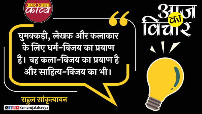 घुमक्कड़ी, लेखक और कलाकार के लिए धर्म-विजय का प्रयाण है। वह कला-विजय का प्रयाण है और साहित्य-विजय का भी।