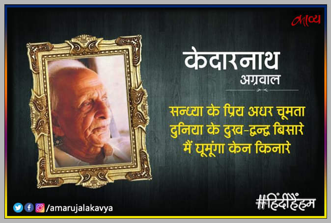अपने क्षेत्र की नदी के साथ घूमते हुए घूमते हुए यूं प्रकृति का चित्रण वही ह्र्दय कर सकता है जिसने उसकी जीवंतता को क़रीब से महसूस किया हो। जिसने अनुभव की हो किसी नदी के किनारे टहलने की शांति, लहरों का गायन, संध्या के साथ डूबते सूरज की सुंदरता। उस पर भी जो कवि अपने इलाके के नदी, पर्वत, सड़क आदि के बारे में लिखें तो मान लेना चाहिए कि वह अपनी मिट्टी में ख़ूब रचे-बसे हैं। एक ऐसे ही कवि हैं केदारनाथ अग्रवाल।