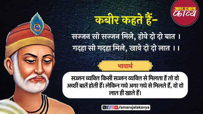 भावार्थ:- सज्जन व्यक्ति किसी सज्जन व्यक्ति से मिलता है तो दो अच्छी बातें होती हैं। लेकिन गधे अगर गधे से मिलते हैं, दो दो लात ही खाते हैं।