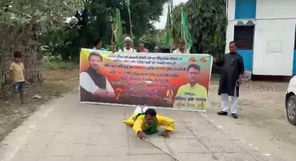 वैशाली जिला के भगवानपुर में राष्ट्रीय जनता दल के नेता केदार प्रसाद यादव ने तेजस्वी प्रसाद यादव को मुख्यमंत्री बनने के लिए छठ व्रत किया है। वह दंडवत करते हुए दो किलोमीटर की दूरी तय करके छठ घाट जाएंगे। उन्होंने कहा कि तेजस्वी प्रसाद यादव को मुख्यमंत्री बनना है। बिहार का विकास करना है भ्रष्टाचार मिटाना है बेरोजगारी खत्म करना है।