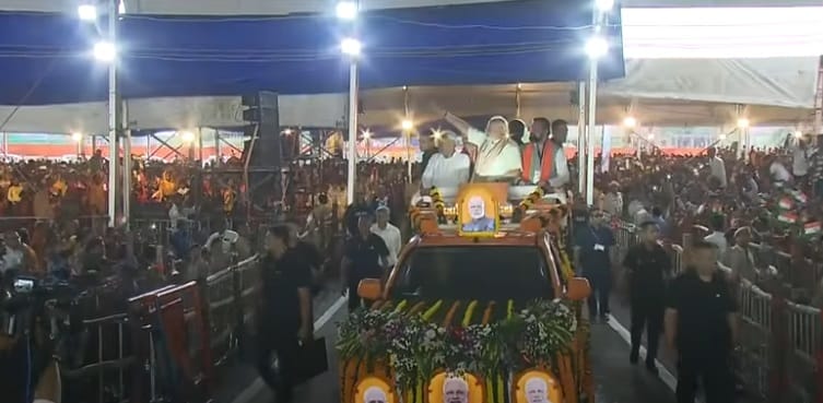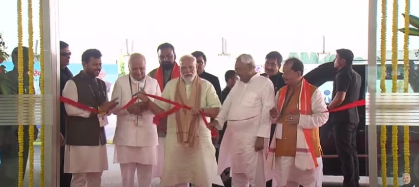 प्रधानमंत्री नरेंद्र मोदी एयरपोर्ट का शुभारंभ करने के बाद गुलाबबाग के शीशाबाड़ी स्थित जनसभा स्थल पर पहुंचे। यहां पर वह सीएम नीतीश कुमार और डिप्टी सीएम सम्राट चौधरी के साथ रथ पर सवार होकर जनसभा स्थल पर पहुंचे। इस दौरान लोगों ने पीएम मोदी और सीएम नीतीश कुमार के नारे लगाकर दोनों नेताओं का स्वागत किया। सभा स्थल पर लोगों की भीड़ उमड़ पड़ी है। मंच से भी पीएम मोदी जिंदाबाद के नारे लगाए जा रहे हैं।
