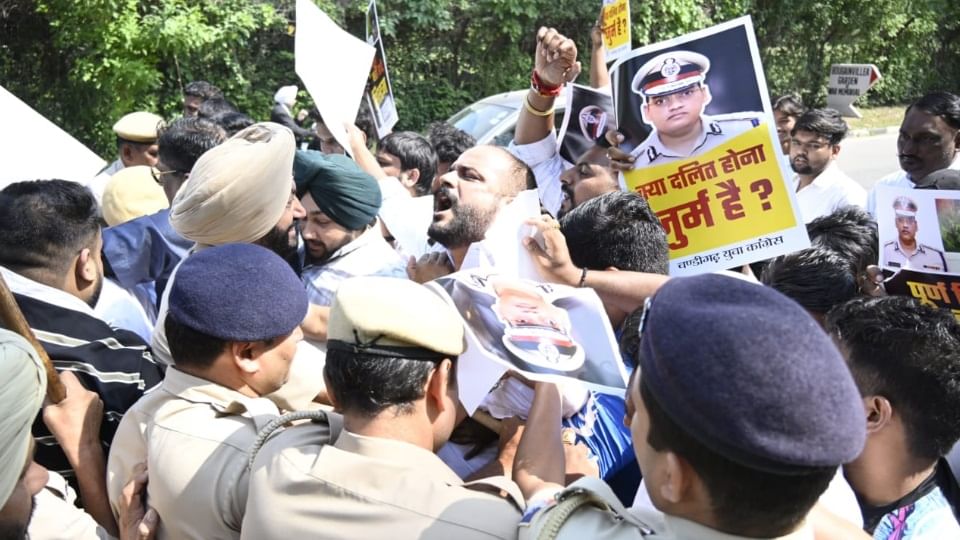 एडीजीपी के घर के बाहर चंडीगढ़ पुलिस से कांग्रेस कार्यकर्ताओं की बहस हुई। सेक्टर 11 थाना प्रभारी इंस्पेक्टर जयवीर भी समझाने पहुंचे।11:26 AM, 14-Oct-2025