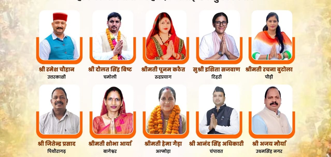 सीएम धामी ने त्रिस्तरीय पंचायत चुनावों में भाजपा अधिकृत जिला पंचायत अध्यक्ष प्रत्याशियों दौलत सिंह बिष्ट जी (चमोली), रचना बुटोला जी (पौड़ी), हेमा गैड़ा जी (अल्मोड़ा), पूनम कठैत जी (रुद्रप्रयाग) और शोभा आर्य (बागेश्वर) की ऐतिहासिक विजय पर बधाई व शुभकामनाएं दी। भाजपा अधिकृत प्रत्याशियों ने 11 में से 10 सीटों पर शानदार जीत दर्ज की है। यह उपलब्धि जनता के विश्वास, संगठन की शक्ति एवं सतत जनसेवा के संकल्प का सशक्त प्रमाण है। उन्होंने सभी नवनिर्वाचित ब्लॉक प्रमुखों को उज्ज्वल कार्यकाल हेतु अनन्त शुभकामनाएं दी।