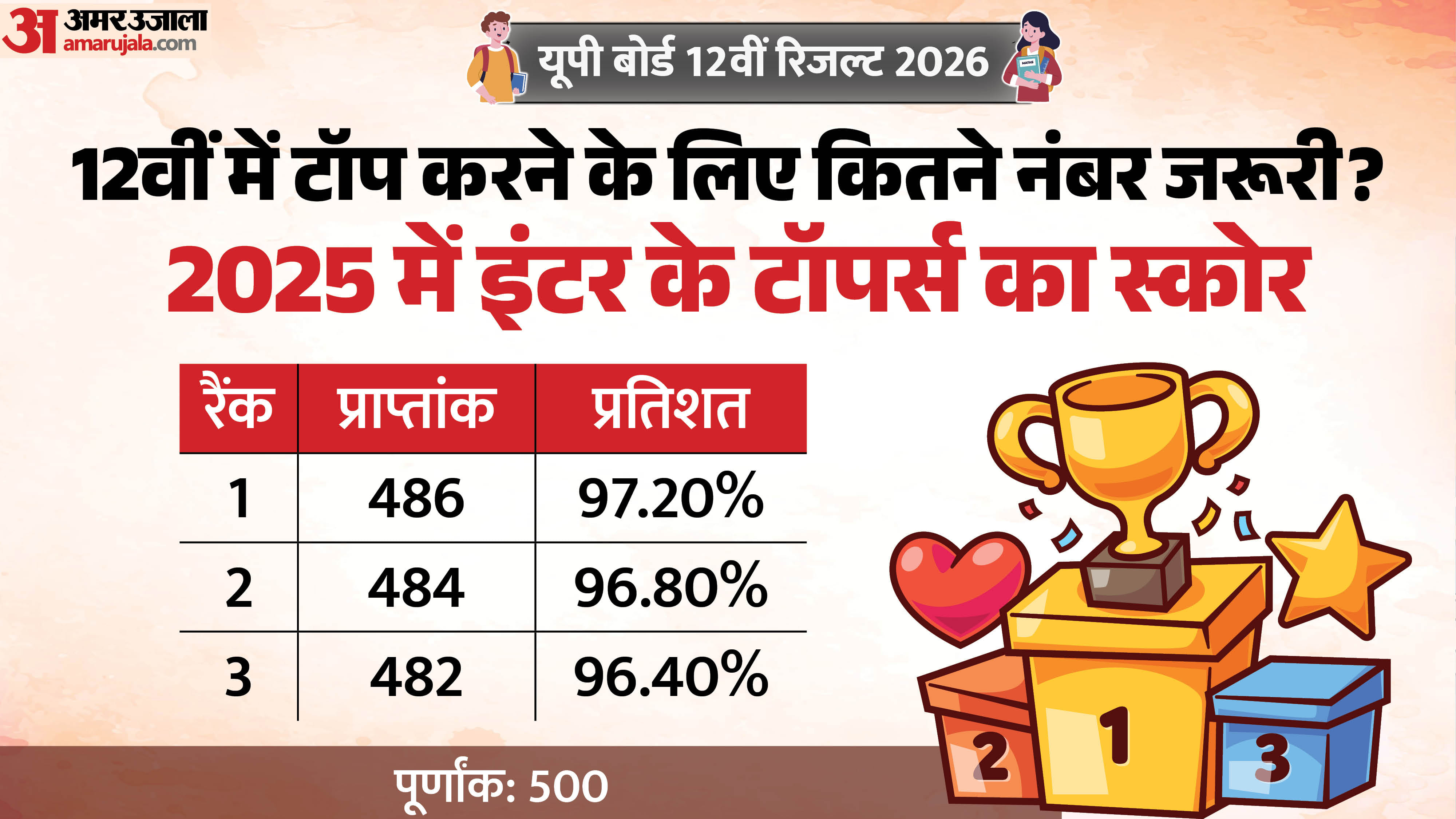 पिछले साल यूपी बोर्ड 12वीं परीक्षा में प्रयागराज की महक जायसवाल ने टॉप किया था। उन्होंने 500 में से 486 अंक हासिल कर 97.20% के साथ पहला स्थान प्राप्त किया और प्रदेश में अपना नाम रोशन किया।12:36 PM, 23-Apr-2026