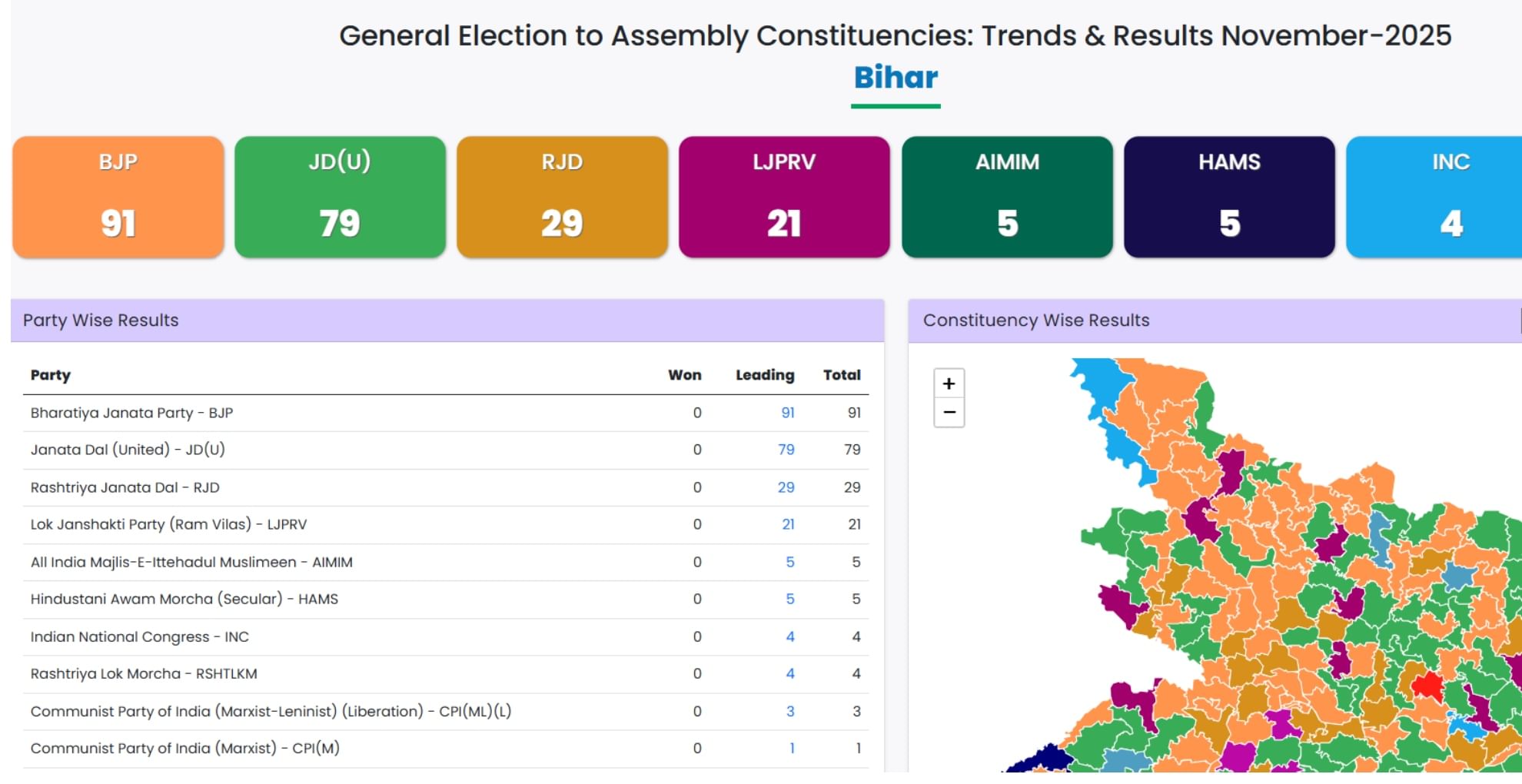 Bihar Election Result Live: एनडीए 199 सीटों पर आगे