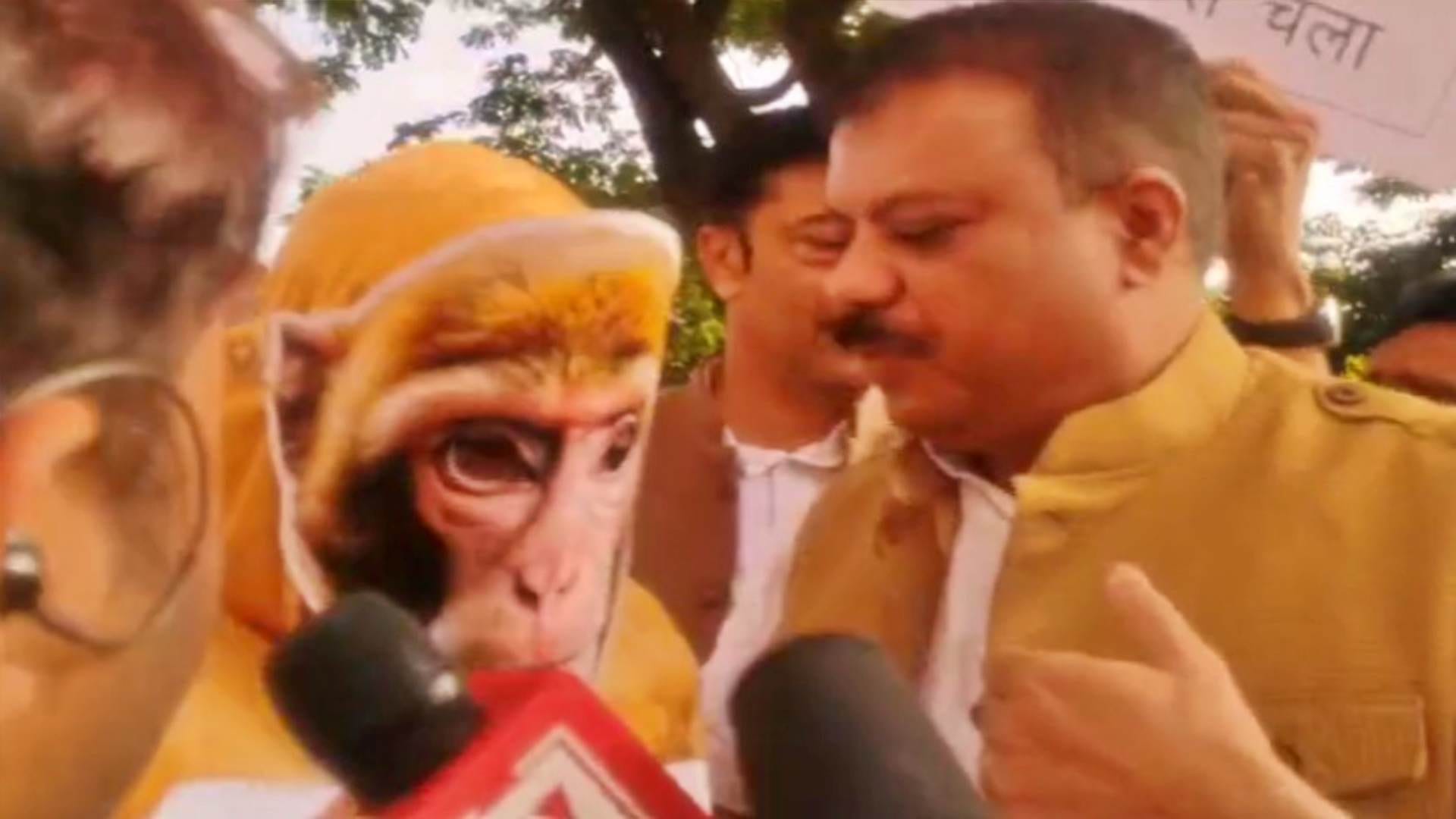 बंदर का रूप लेकर पहुंचे विधानसभा।