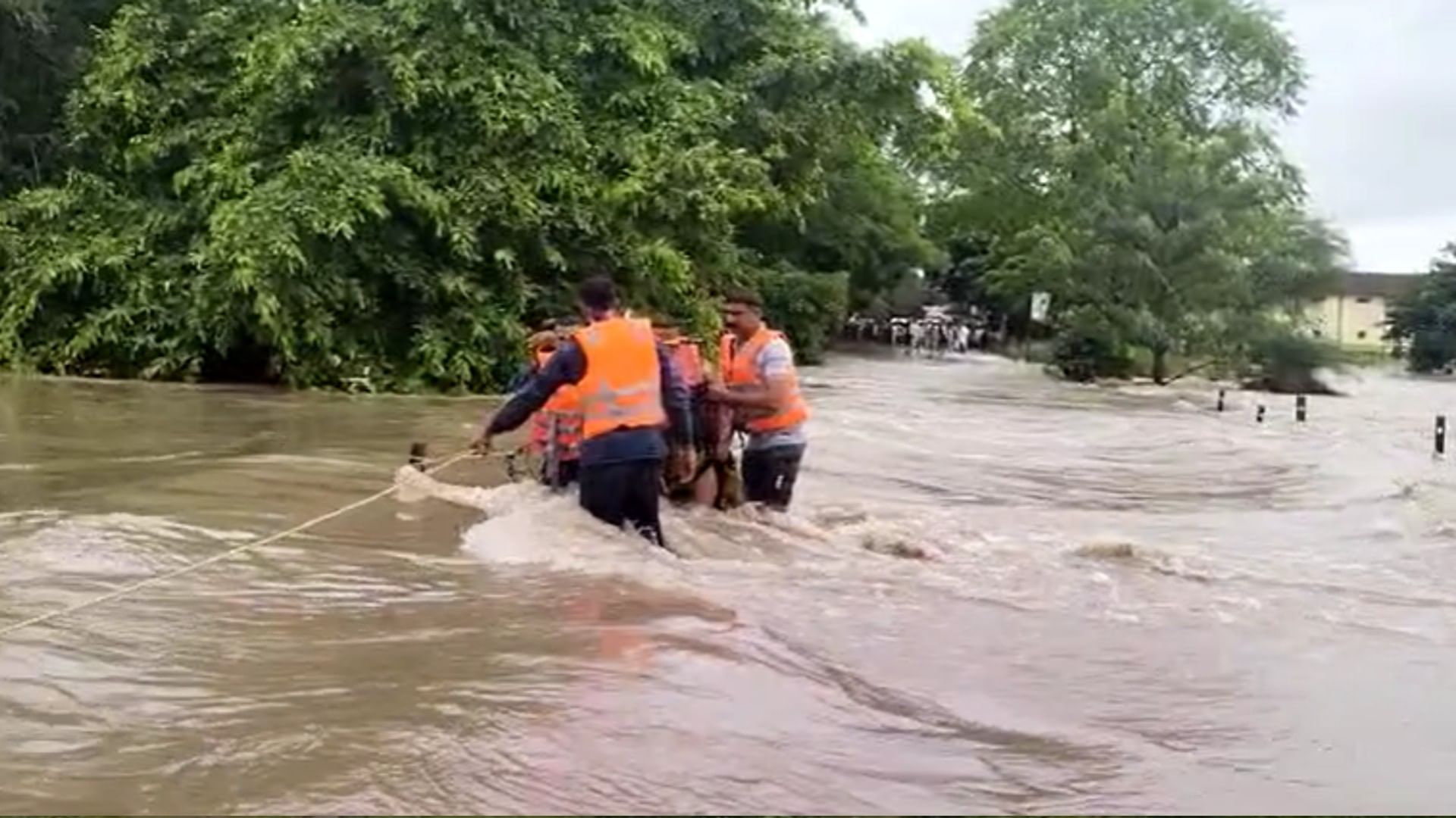 भारी बारिश के बीच फंसे लोगों को बचाकर सुरक्षित स्थान पर ले जाते होमगार्ड के जवान
