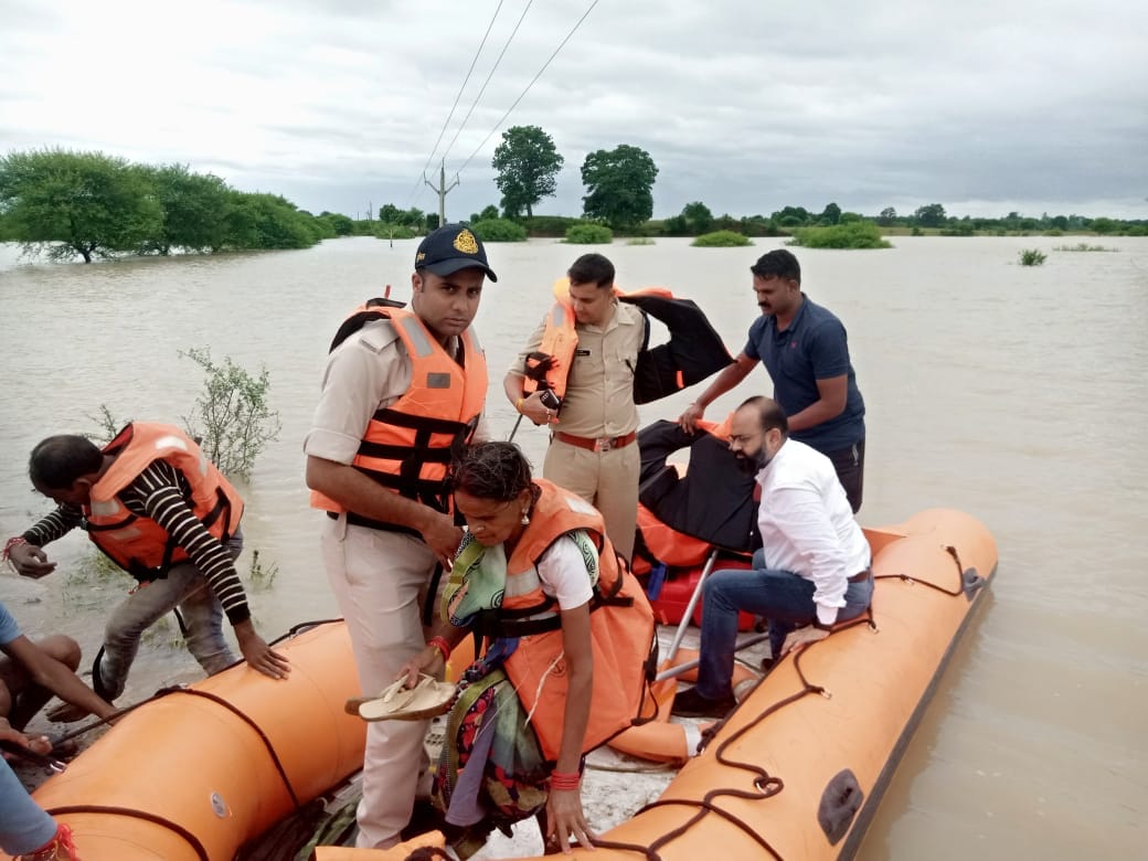 सीहोर में बाढ़ संभावित इलाकों से ग्रामीणों को बाहर निकाला गया।