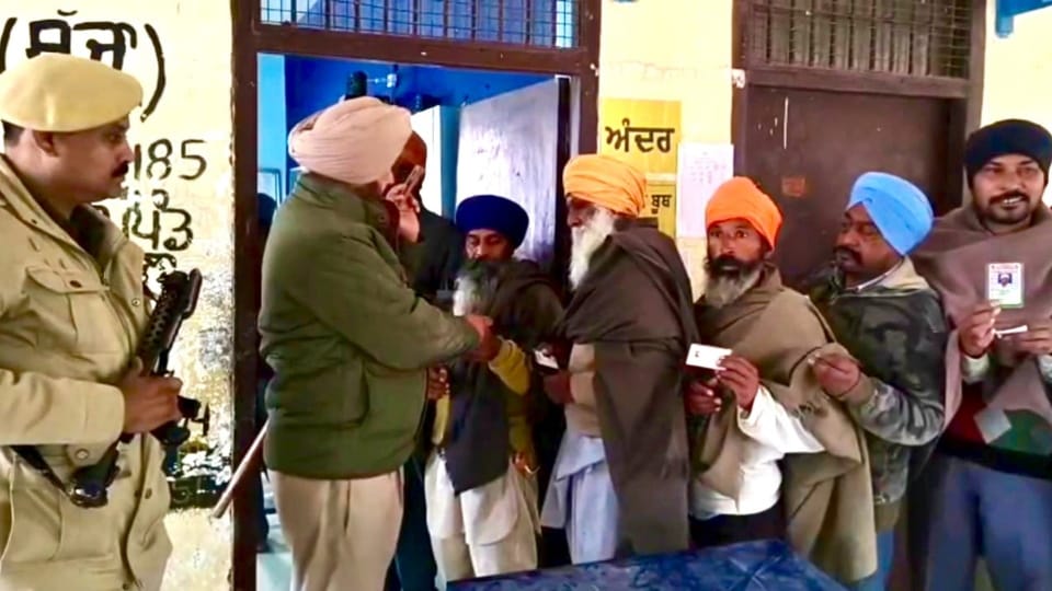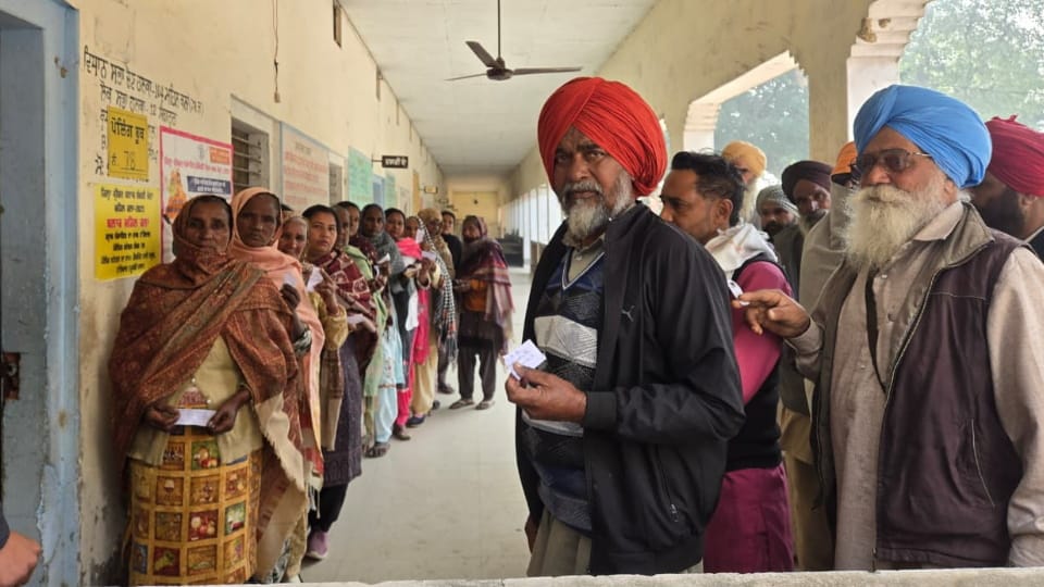 बरनाला में मतदान केंद्रों पर लगी मतदाताओं की लाइन