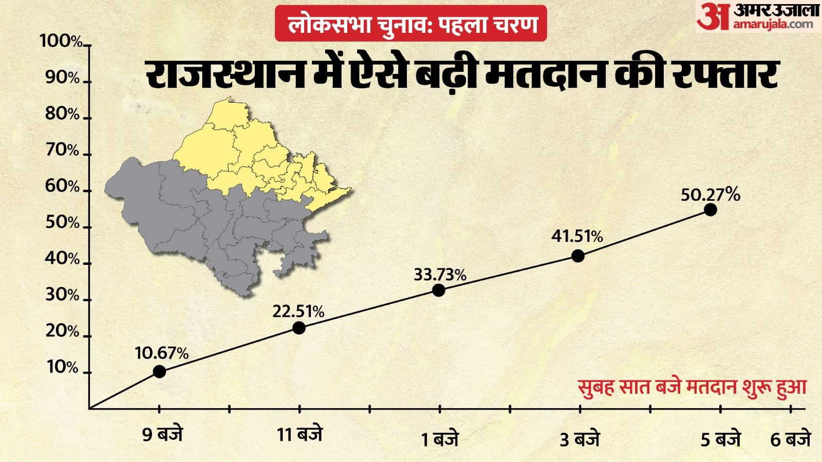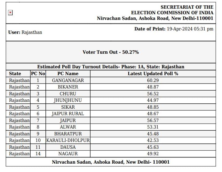 Rajasthan Lok Sabha Phase 1 Election Live: राजस्थान में शाम छह बजे तक 51.16% वोटिंग, सबसे कम करौली में