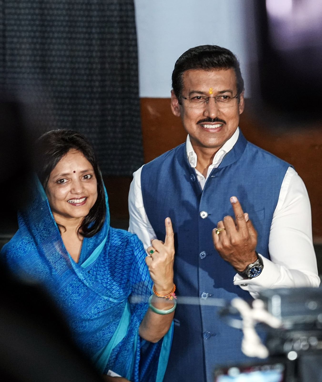 पहले चरण के मतदान में राजस्थान के मंत्री और भाजपा नेता राज्यवर्धन राठौड़ ने अपनी पत्नी के साथ मतदान करने पहुंचे। जयपुर के एक मतदान केंद्र पर उन्होंने अपना वोट डाला।