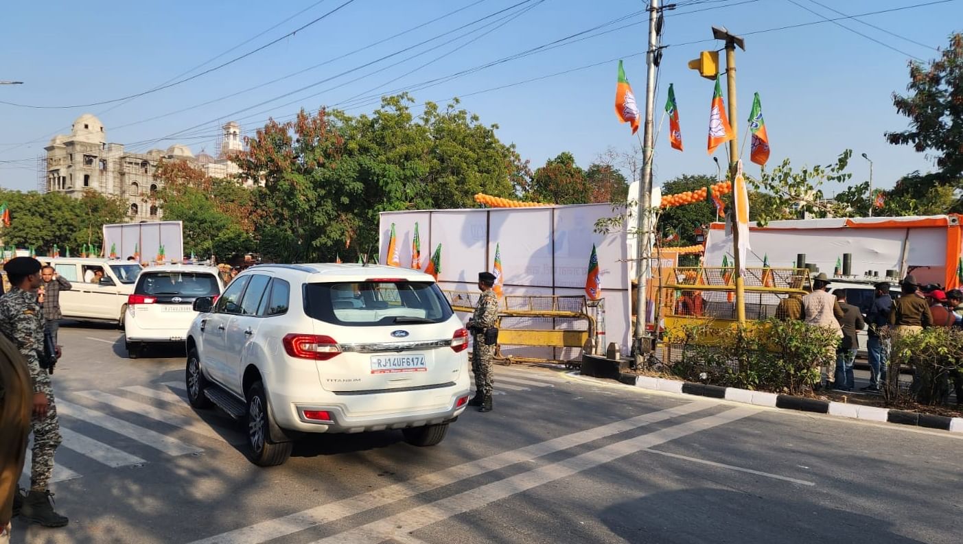 बता दें कि उनके साथ राजनाथ सिंह और वसुंधरा राजे सिंधिया भी मौजूद हैं।