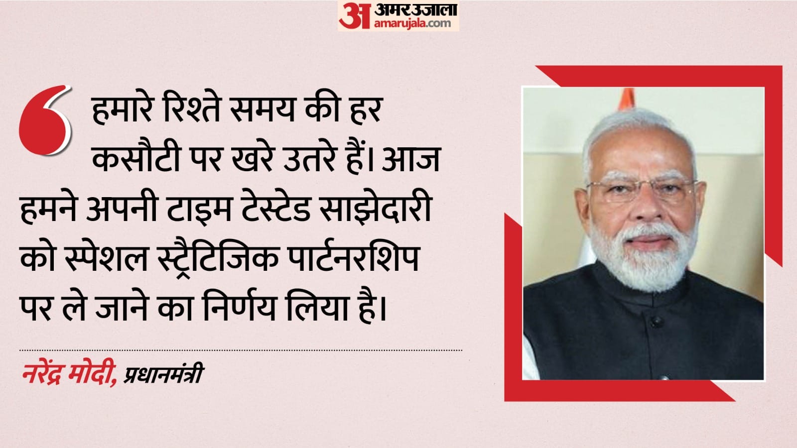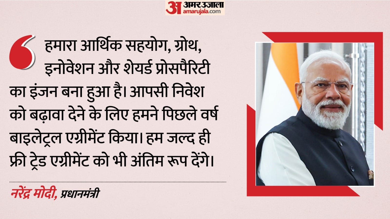 इस्राइली समकक्ष बेंजामिन नेतन्याहू के साथ संयुक्त प्रेस कॉन्फ्रेंस में प्रधानमंत्री नरेंद्र मोदी ने कहा, हमारे रिश्ते समय की हर कसौटी पर खरे उतरे हैं। आज हमने अपनी टाइम टेस्टेड साझेदारी को स्पेशल स्ट्रैटिजिक पार्टनरशिप पर ले जाने का निर्णय लिया है। आज की बैठक में हमने अपने सहयोग को नई दिशा और तेज गति देने पर चर्चा की। हमारा आर्थिक सहयोग, ग्रोथ, इनोवेशन और शेयर्ड प्रोसपैरिटी का इंजन बना हुआ है। आपसी निवेश को बढ़ावा देने के लिए हमने पिछले वर्ष बाइलेट्रल एग्रीमेंट किया। हम जल्द ही फ्री ट्रेड एग्रीमेंट को भी अंतिम रूप देंगे। तकनीक हमारी भावी साझेदारी का केंद्र है। आपसी निवेश को बढ़ावा देने के लिए हमने पिछले वर्ष बाइलेट्रल एग्रीमेंट किया। हम जल्द ही फ्री ट्रेड एग्रीमेंट को भी अंतिम रूप देंगे। तकनीक हमारी भावी साझेदारी का केंद्र है।