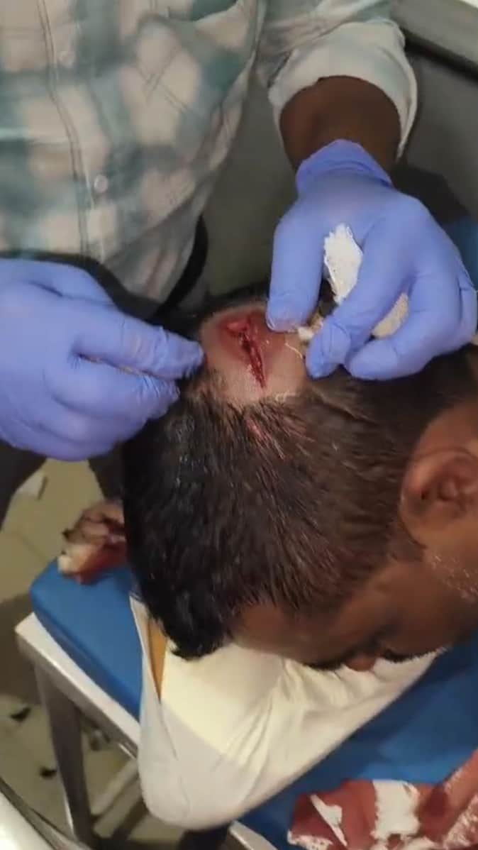पिटाई से घायल अधिवक्ता व उनके साथी।