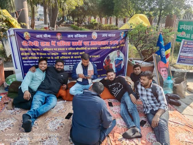 बीबीएयू में दसवें दिन भी धरने पर बैठे छात्र - फोटो स्वयं