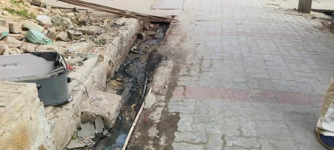 सड़क और नाली में बिखरी गंदगी।
