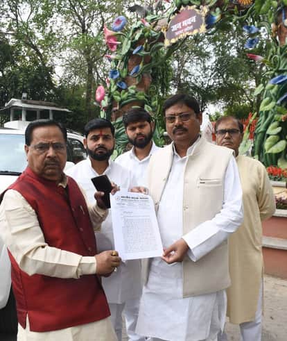 ज्ञापन देते समाज के लोग।