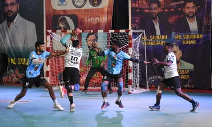 केडी सिंह बाबू स्टेडियम में उत्तर प्रदेश प्रो हैंडबॉल लीग में बर्बरीक वारियर्स और नोएडा ब्लास्ट
