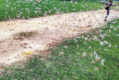 रतनापुर में टिड्डियों के हमले के दौरान लोग खासे परेशान हुए।