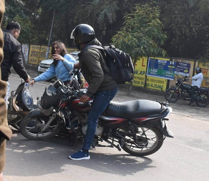 बाइक और स्कूटी में भिड़ंत।