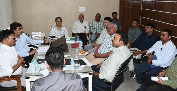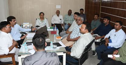 बैठक करते अधिकारी।