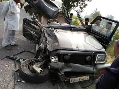 बोलेरो-ट्रक की टक्कर में सपा नेता की मौत, पत्नी घायल