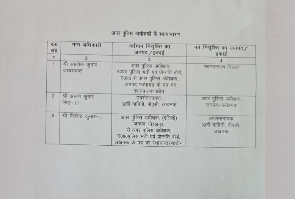 UP News: यूपी में तीन अपर पुलिस अधीक्षकों के तबादले, एक स्थानांतरण निरस्त किया गया