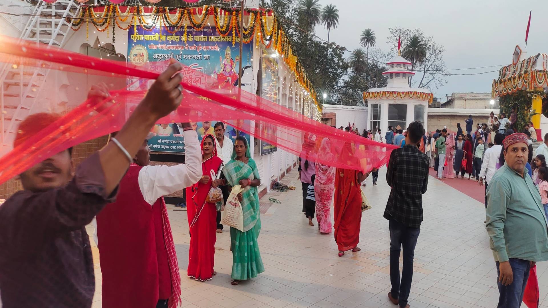 इस अवसर पर 2200 मीटर भव्य चुनरी यात्रा शांति कुटी आश्रम से निकाली गई, जो कि दीनदयाल चौक से होते हुए मां नर्मदा मंदिर तक पहुंची। इसके साथ ही कपिलधारा से मां काली, शिव पार्वती एवं राधा कृष्ण के रूप में सजे हुए कलाकारों ने मनमोहक प्रस्तुति दी। वहीं, पीछे-पीछे सैकड़ों की संख्या में श्रद्धालु इस शोभायात्रा के पीछे चलते हुए पुष्प वर्षा करते हुए देखे गए।